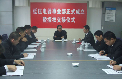 集團經(jīng)過多年發(fā)展,產(chǎn)業(yè)格局日漸增多。為了便于有效管理、高效運作,經(jīng)集團總裁辦公會討論決定,于2007年12月8日正式成立低壓電器事業(yè)部,任命林光強同志為執(zhí)行總裁兼低壓電器事業(yè)部總經(jīng)理,事業(yè)部下設營銷中心、行政中心、技術部、品質部、生產(chǎn)一部(含電工、采購、核算、三分廠等)、生產(chǎn)二部(儀表)、生產(chǎn)三部(電源)。