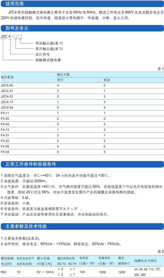 JZC4接觸器式繼電器